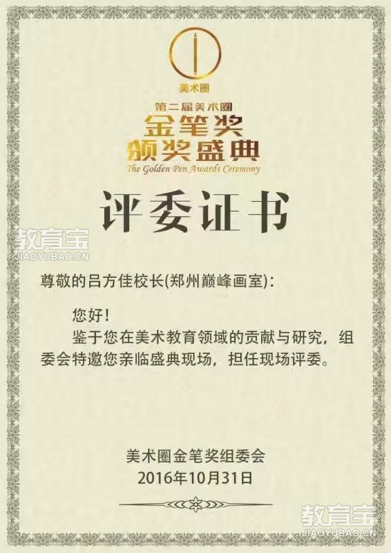 第二屆金筆獎(jiǎng)現(xiàn)場(chǎng)評(píng)委,塑造派發(fā)起人,青竹聯(lián)考顏料代言人,二十萬(wàn)暢銷(xiāo)書(shū)作者,在鄭州106中學(xué)舉辦呂方佳《*強(qiáng)色彩》作品展,2015 年策劃“塑造派全國(guó)美術(shù)巡回展”,應(yīng)邀為敲門(mén)磚《群英會(huì)》教師研修班授課,出版?zhèn)€人單集《*強(qiáng)色彩》銷(xiāo)售量全國(guó)超過(guò)20萬(wàn)冊(cè)被全國(guó)諸多藝術(shù)高中選做教材。