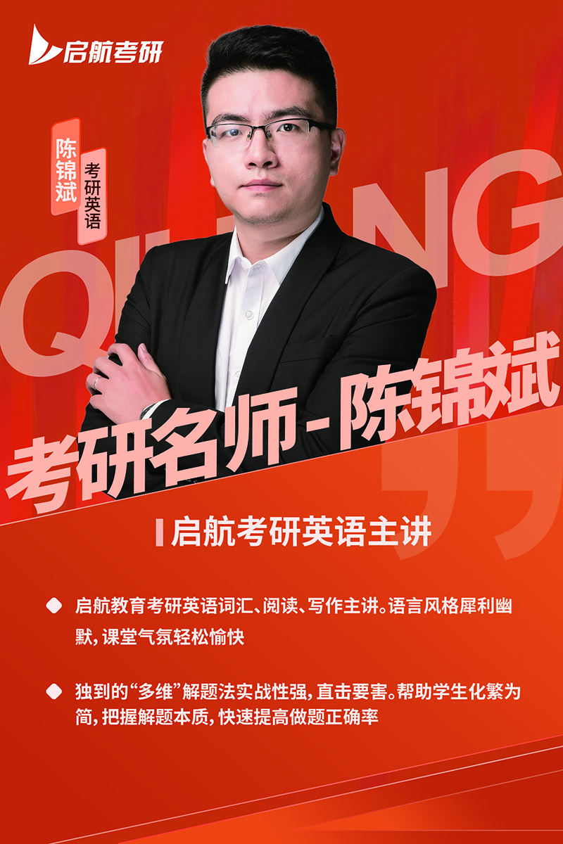 啟航教育考研英語(yǔ)詞匯、閱讀、寫(xiě)作主講。語(yǔ)言風(fēng)格犀利幽默,課堂氣氛輕松愉快;獨(dú)到的“多維”解題法實(shí)戰(zhàn)性強(qiáng),直擊要害。幫助學(xué)生化繁為簡(jiǎn),把握解題本質(zhì),快速提高做題正確率