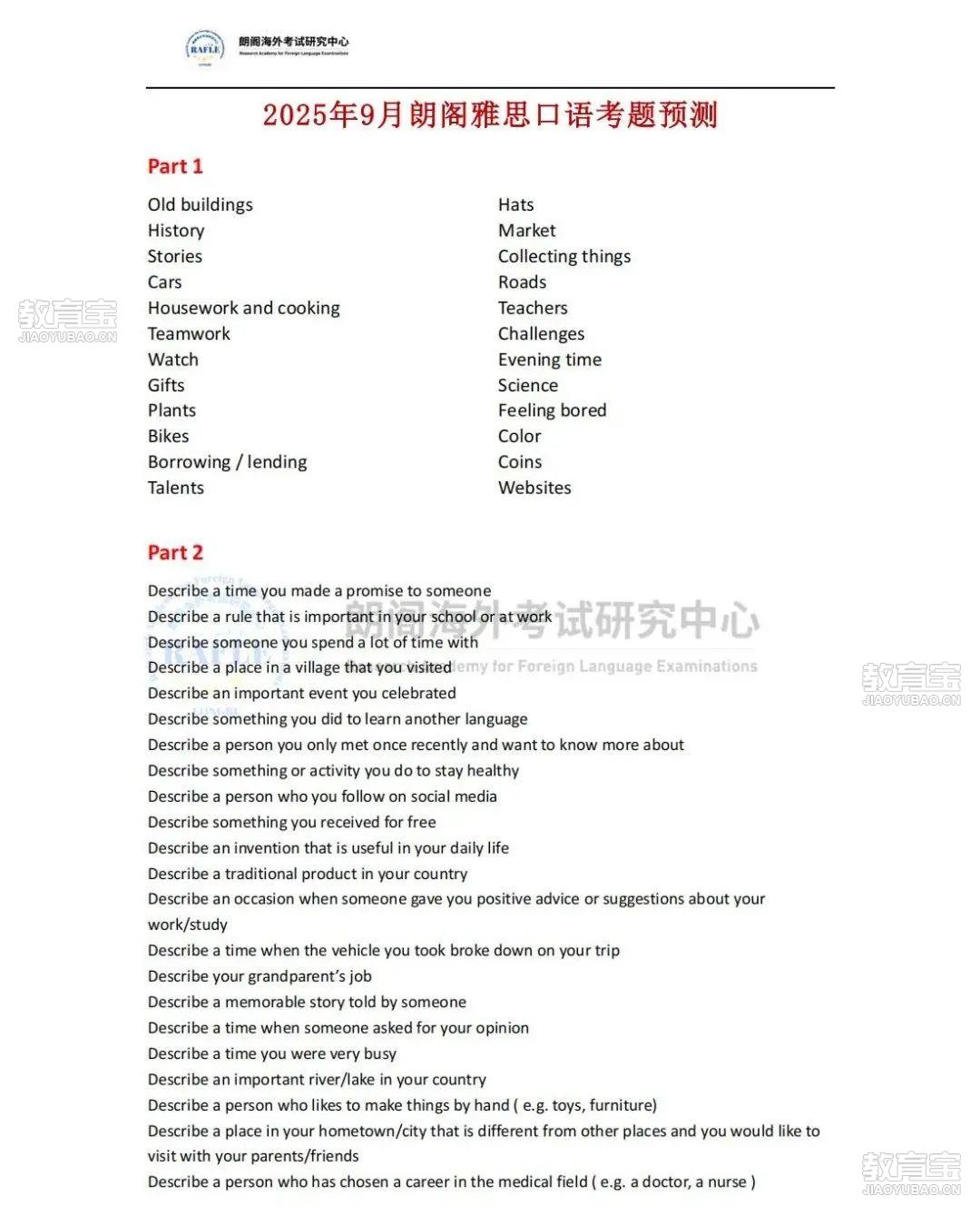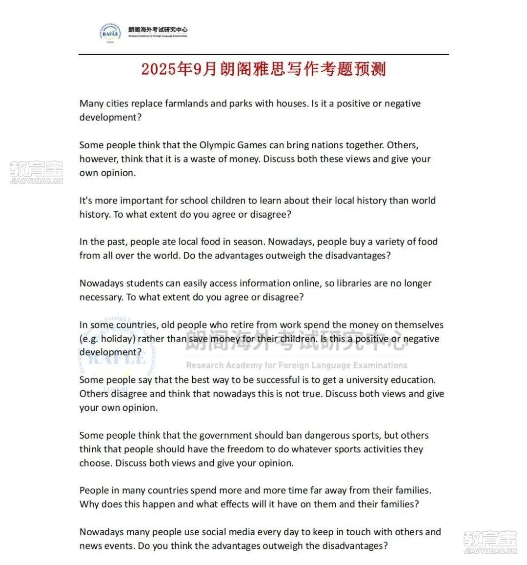 近考試,不知道該怎么入手,抓不住重點,怎么辦?朗閣海外考試研究中心結(jié)合自己的教學經(jīng)驗,整理出2025年9月雅思考題預測,助力大家考前彎道超車,盡早上岸。