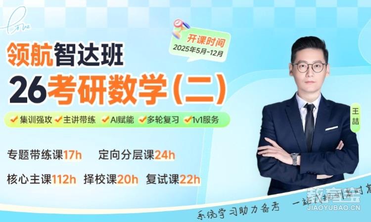 27考研數(shù)學(xué)全程智達班:所屬類別:考研培訓(xùn)/考研公共課培訓(xùn);課程亮點:小班授課;三師伴學(xué);適合人群:對此有需求的人群;目標(biāo)收獲:27考研數(shù)學(xué)全程智達班