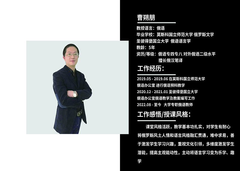 課堂風格活躍,教學基本功扎實,對學生有耐心將俄羅斯風土人情和語言風格融匯貫通,難中求易,善于激發(fā)學生學習興趣