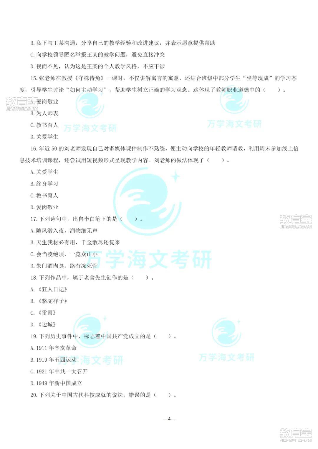 微信添加小熊老師回復【教資押題卷】獲取2025下教資筆試絕密押題卷匯總【部分內容展示】