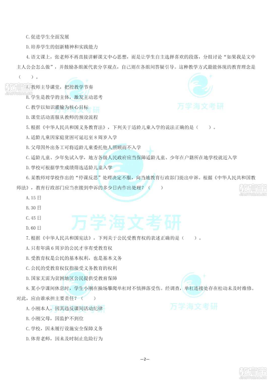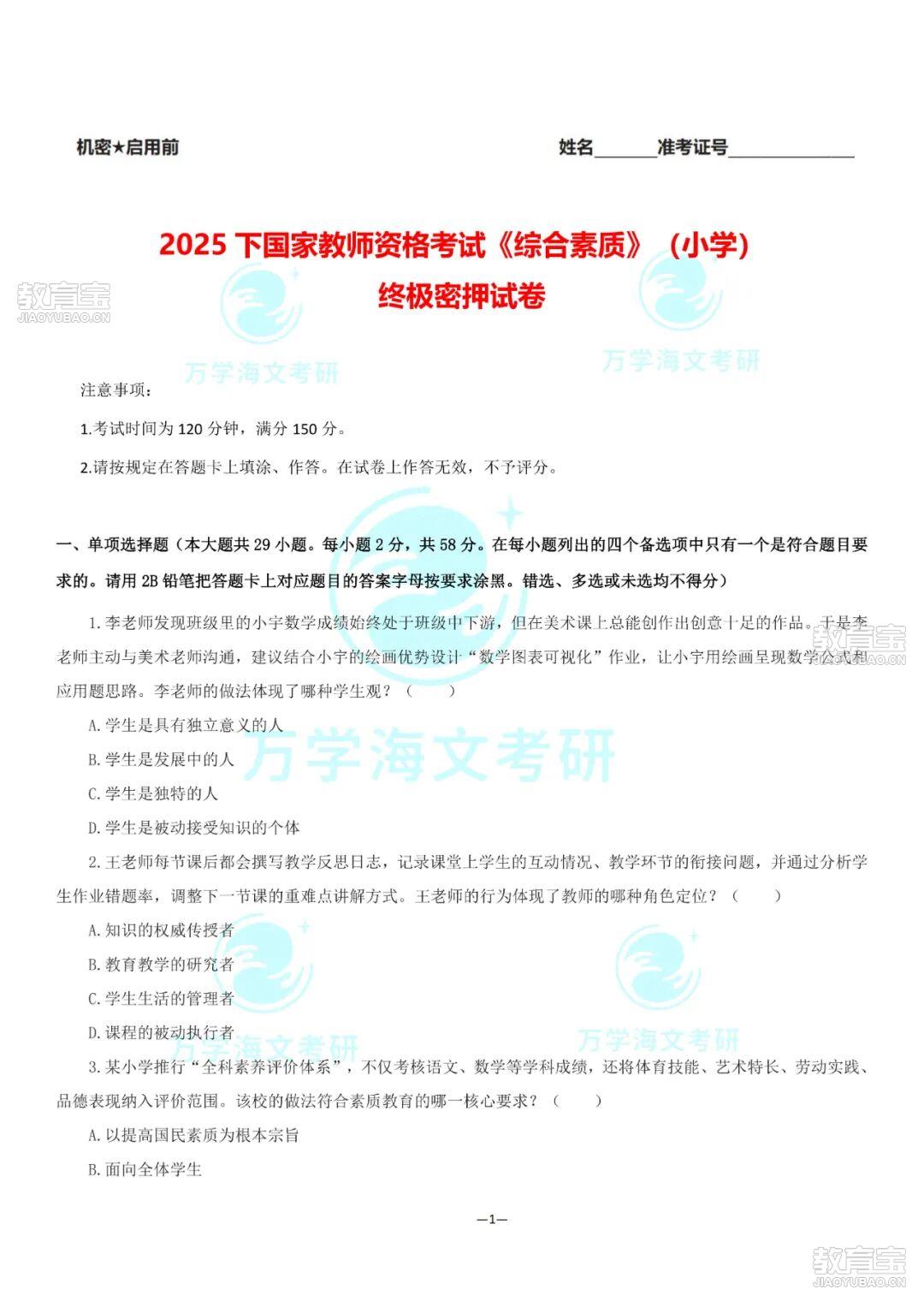 回復【教資押題卷】獲取2025下教資筆試絕密押題卷匯總【部分內容展示】